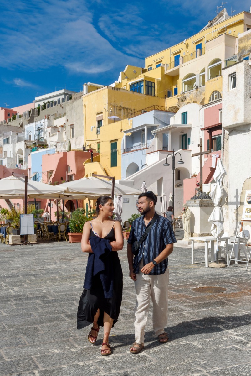 Il tour ha inizio dalla penisola Sorrentina o dal porto di Napoli. Un capitano esperto ti darà il benvenuto a bordo e salperai alla volta di Procida, che avrai occasione di ammirare da una prospettiva unica via mare, alla scoperta di luoghi iconici come il centro medievale di Terra Murata, il borgo marinaro di Marina Corricella, l'incantevole baia della Chiaiolella e il maestoso Faro.